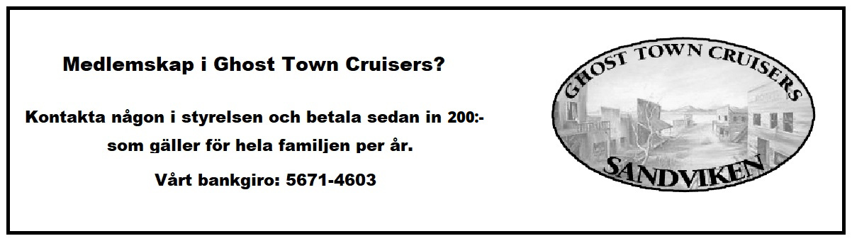 Vi har "Ghost Town Cruisers" tröjor, linnen, t-shirts, ryggmärken, dekaler och kepsar för försäljning. |
